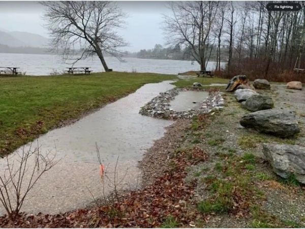 Large paved area at Town Beach draining to a repeat gully erosion site. FEA developed a conceptual design to stabilize the erosion while maintaining recreational and maintenance access to the beach.